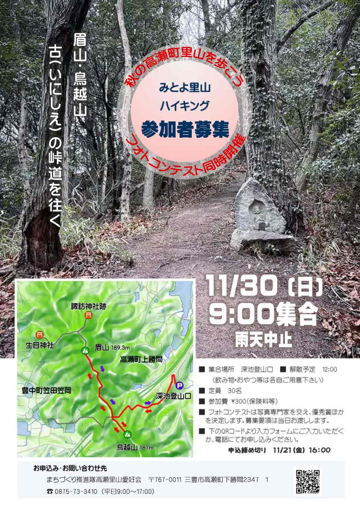 秋の高瀬町里山を歩く<みとよ里山ハイキング~眉山・鳥越山~>を開催します。